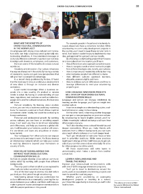 needs to adapt. By having an understanding of local WILL DEVELOP YOUR CROSS-CULTURAL