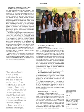 food for many generations to come. ance of AVA scientists, I was able to hone my labo-