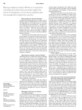 What led you to consider a career in NParks? ships, before and midway through my studies. In my