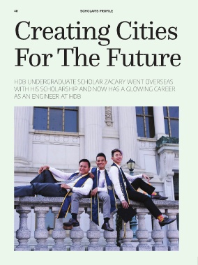 48 SCHOLAR’S PROFILE Creating Cities For The Future HDB UNDERGRADUATE SCHOLAR ZACARY WENT OVERSEAS WITH HIS SCHOLARSHIP AND NOW HAS A GLOWING CAREER AS AN ENGINEER AT HDB